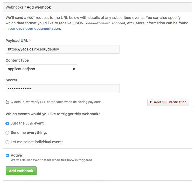 Github will POST to the provided address whenever a branch is updated