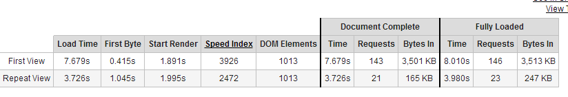 The average time at which "visible parts" of the page are displayed, expressed in milliseconds and dependent on size of the viewport.