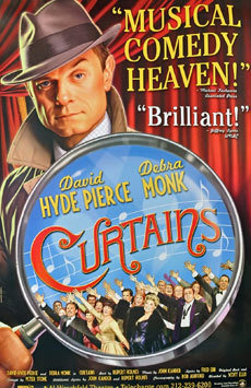A musical that doesn’t make sardonic reference to the history of musicals is a rarity in the age of The Producers, Spamalot and The Drowsy Chaperone. Curtains provides plenty of jokey visual and aural allusions to hits like Oklahoma!, Annie Get Your Gun and 42nd Street’.