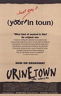 The 2001 hit Urinetown caused quite a bit of stir in its sort of post-modern sensibility as a major meta-musical. The show appealed to many audiences not necessarily fans of the Broadway musical in general, but somehow able to "get" Urinetown because the convention of singing and dancing was not taken for granted, but commented on. Throughout the action, Officer Lockstock and Little Sally, offer a hilariously skewering dialogue in referential counterpoint to the general themes and plot. There was concern that this new school of thought might herald the end of traditional musical theatre. Of course, time has shown Urinetown to be a beloved piece of the canon and we can now rest assured the future of Broadway lies in broadening its definition, not narrowing it.