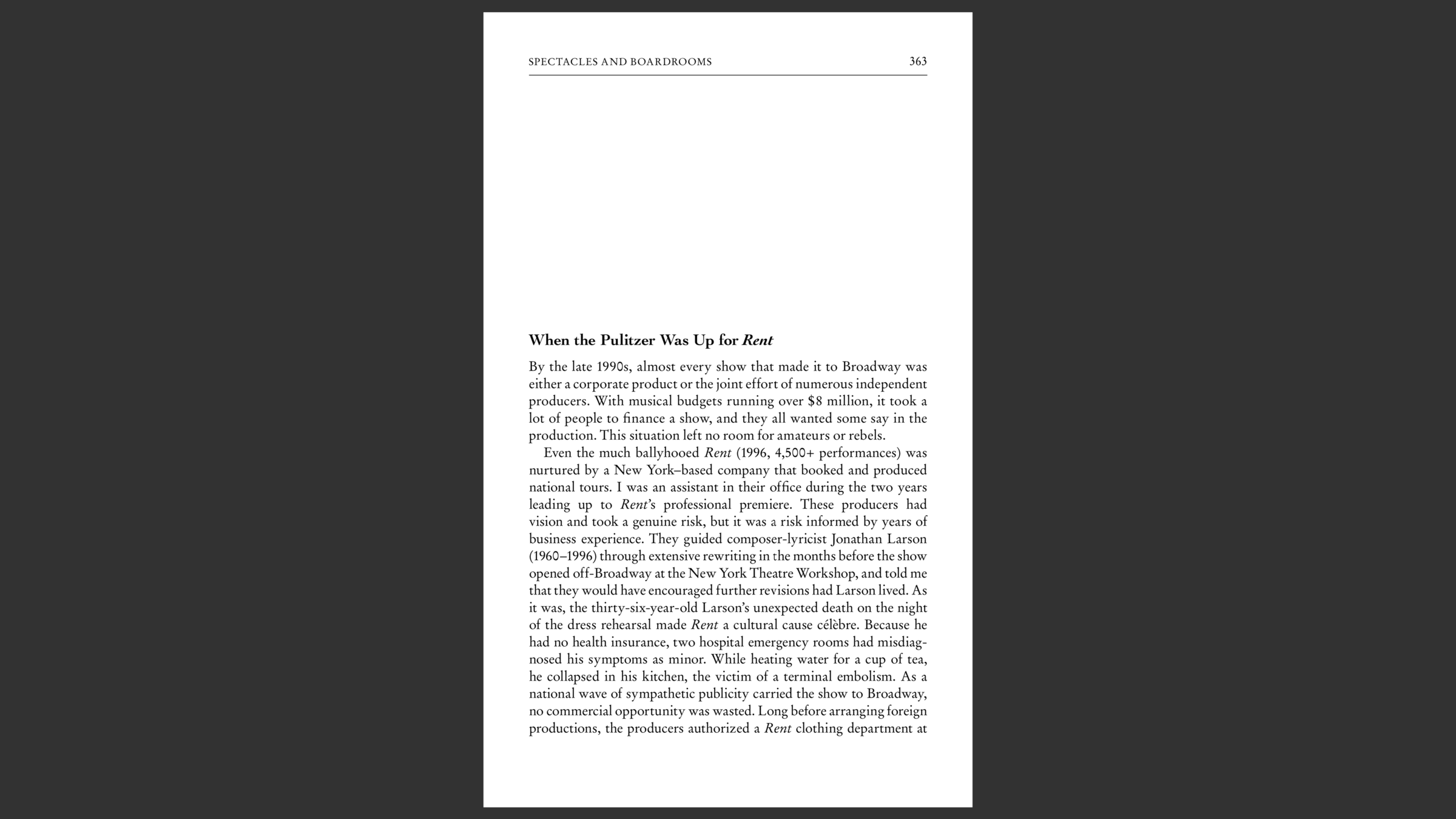 Everybody had a higher purpose; we were no longer doing a show, we were breathing life into the voice of a young man who had much more to say, and we had to say it with all the muscularity and clarity we could. There was no room to be afraid." - McCollum, producer of RENT