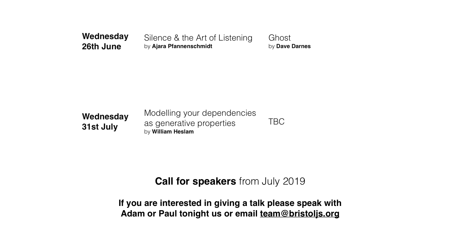 Want to sponsor Us? Email team@bristoljs.org