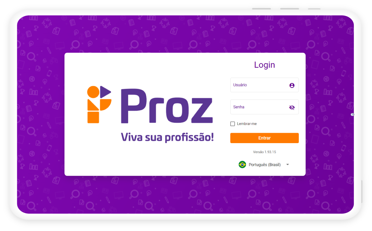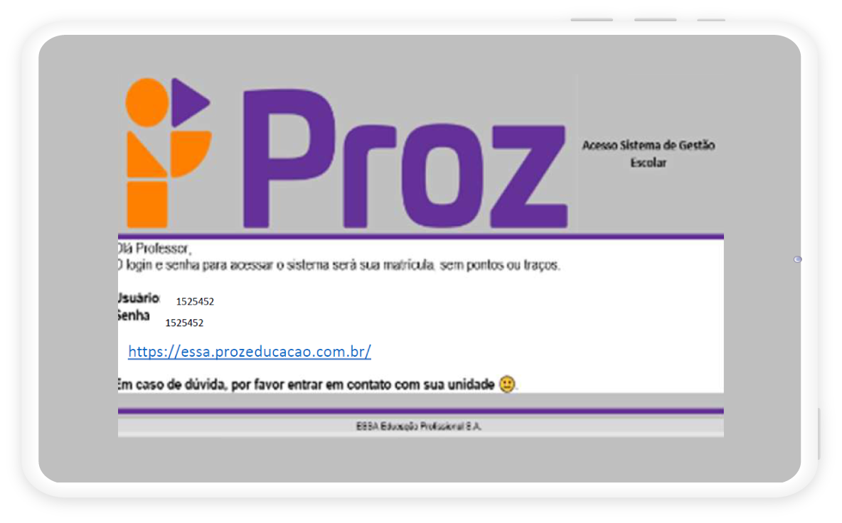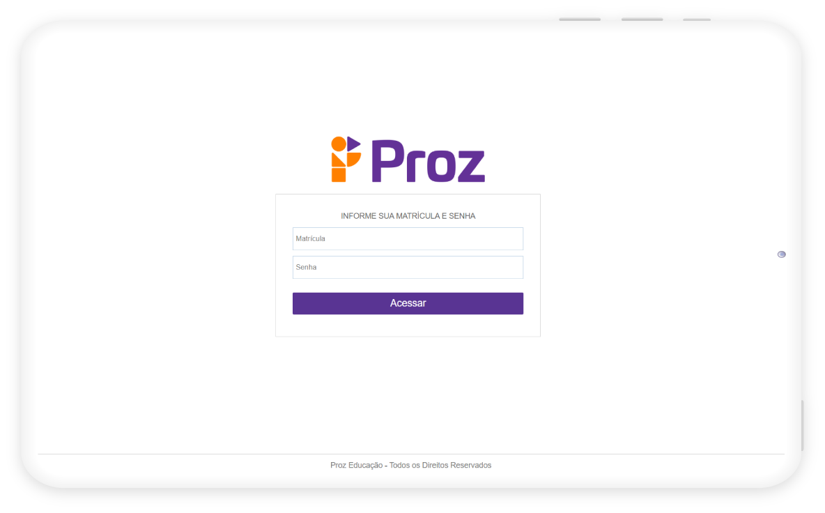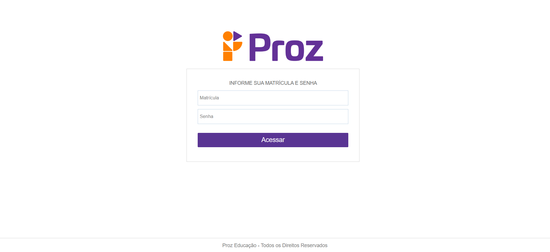 O aluno deve acessar o portal web da Proz sendo o login e senha seu número de