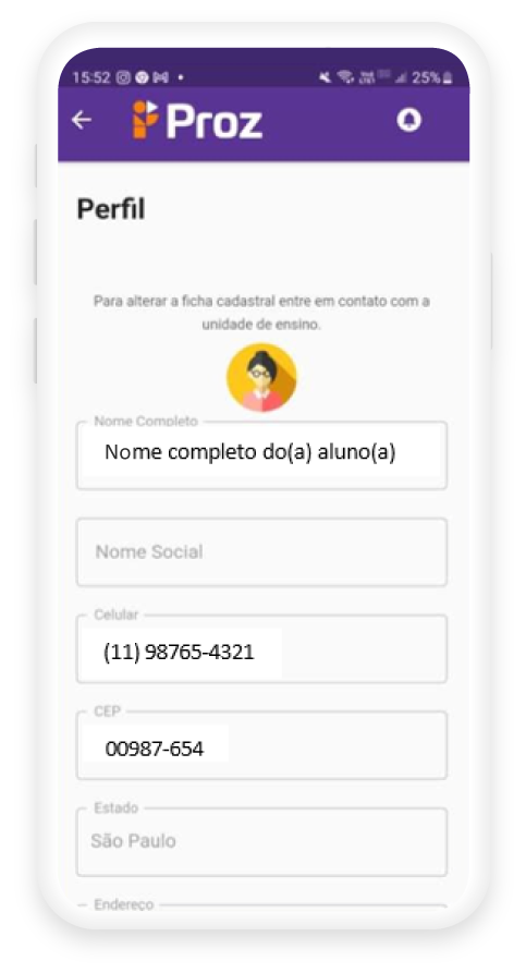 É importante que a secretaria da unidade também saiba orientar o aluno sobre como baixar o aplicativo e informar sobre o portal web Proz, suas funcionalidades e usabilidade.