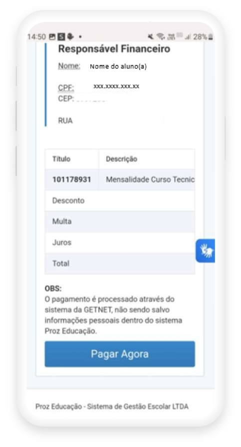 Ao clicar em financeiro o sistema mostrará as parcelas do seu curso com
