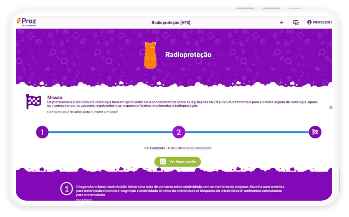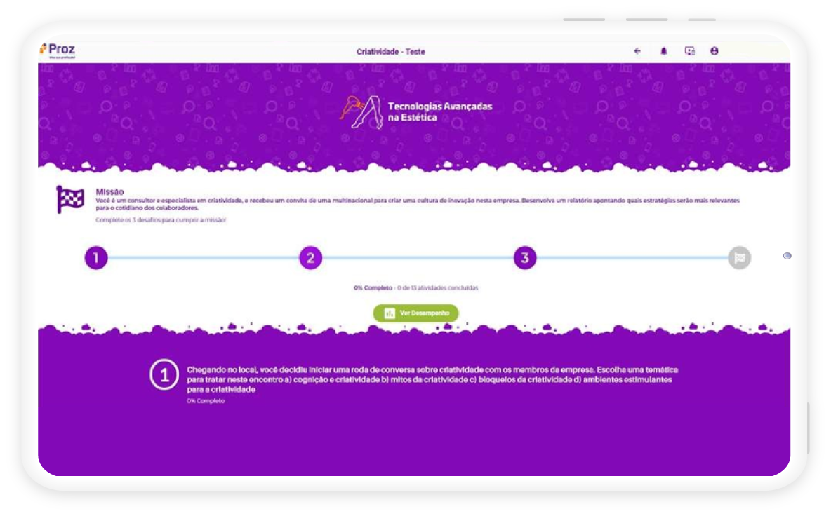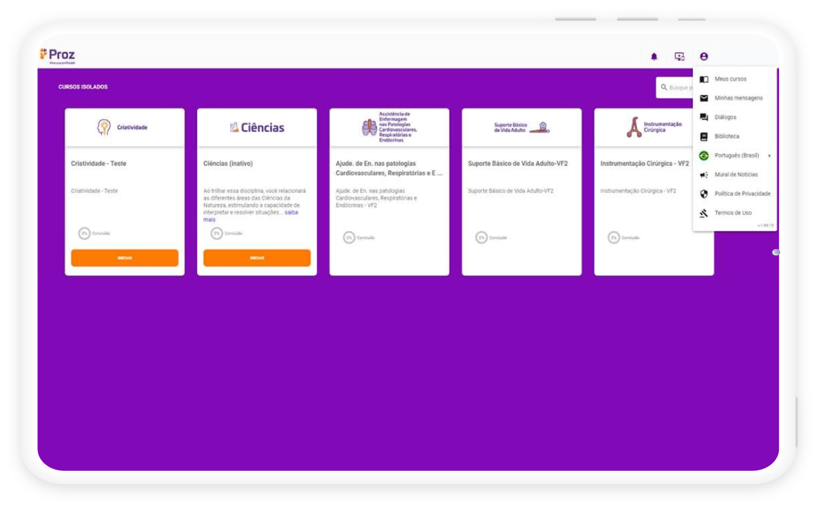 Com o acesso à Academia Proz os docentes e coordenação têm liberação aos cursos que compõem o programa de Formação Docente da Proz, cursos institucionais e trilhas de aprendizagem institucionais.