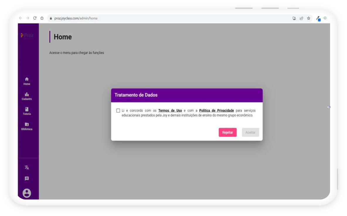 Com esse acesso você confirma se o(a) aluno(a) têm acesso ou não à plataforma Joy e se realizou ou não às aulas EAD;