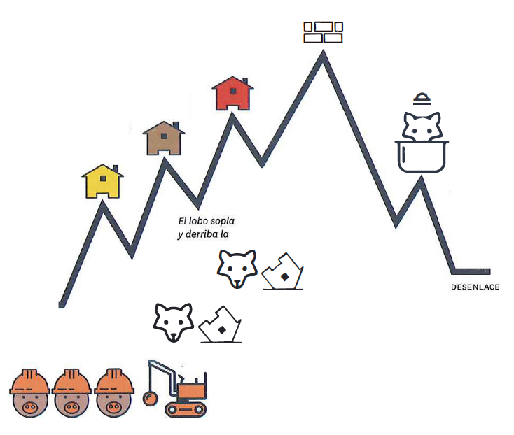 pasos y una historia tiene tres partes básicas: principio, nudo y desenlace.