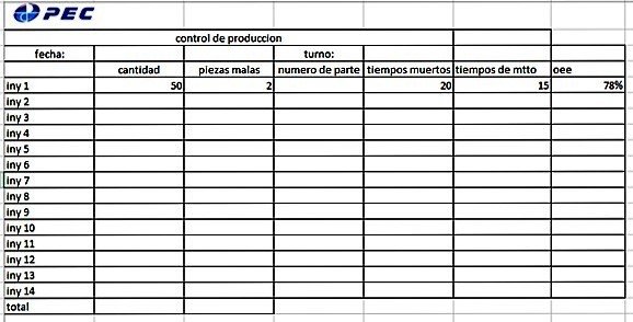 Anteriormente en PEC de México se llevaba de manera separada y en formatos impresos el control de producción y el cálculo del oee se hacía de forma separada, es decir que el operador llenaba un formato que no servía de mucho solo de registro de piezas por hora y de piezas defectuosas, aparte se hacía un formato de tiempo muerto para el cálculo del oee el cual se llenaba en un formato en Excel de forma manual por el supervisor a diario lo cual era una gran pérdida de tiempo y recursos para la empresa puesto que aparte del tiempo perdido por el registro de piezas de los operadores, también el supervisor tenía que vaciar esa información en un formato de Excel para calcular el oee diario.
