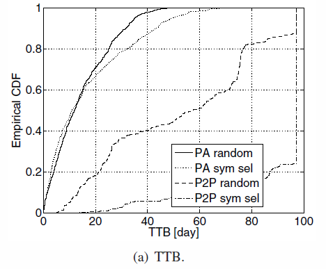 - TTB repartition : P2P cannot handle both, while PA can handle symetric selection with not a lot of impacts