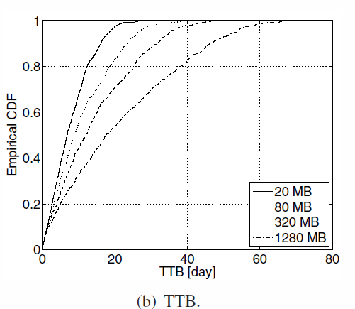 TTB (Time to backup) : time needed to complete the backup. The number of uploaded fragments x+s respect the successful backup condition