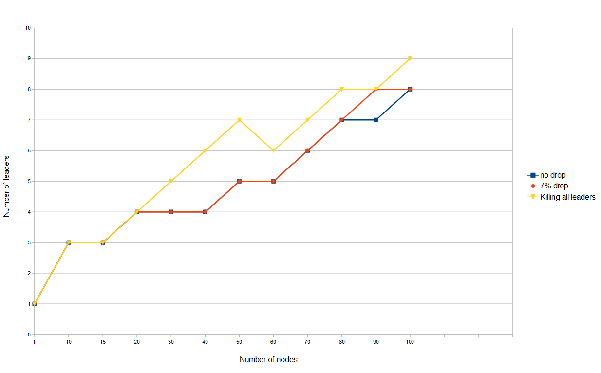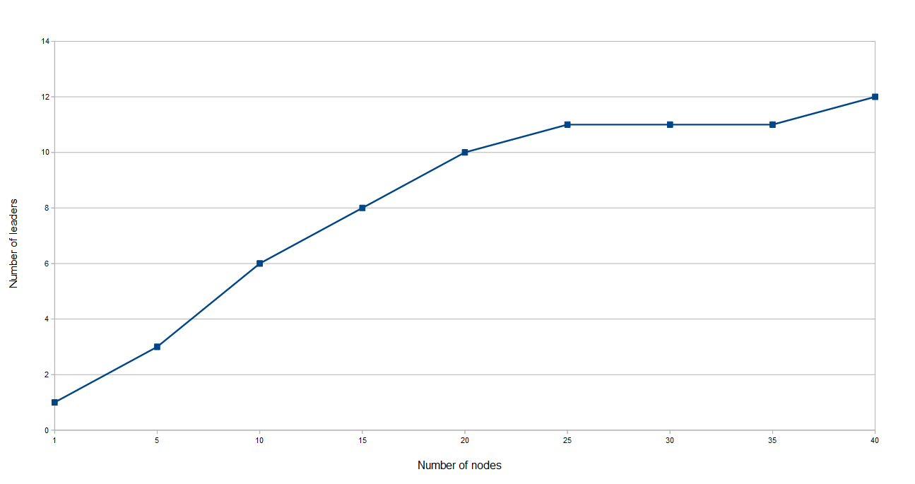 - The number of leaders in the system drops below N leaders : Leaders take care of electing a new node