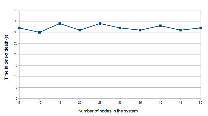 Time to detect a leader's death with a growing number of nodes in the system