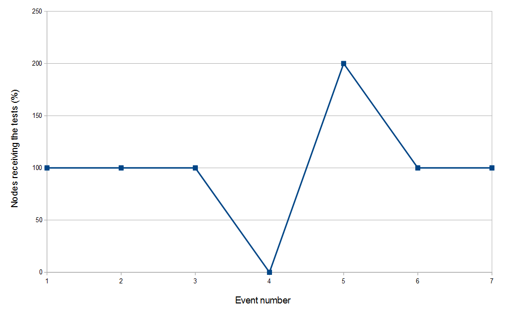 Percentage of nodes receiving tests after failures event
