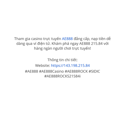 Tham gia casino trực tuyến AE888 đẳng cấp, nạp tiền dễ dàng qua ví điện tử. Khám phá ngay AE888 215.84 với hàng ngàn người chơi trực tuyến! Thông tin chi tiết: Website: https://143.198.215.84 #AE888 #AE888Casino #AE888ROCK #SIDIC #AE888ROCKS21584i