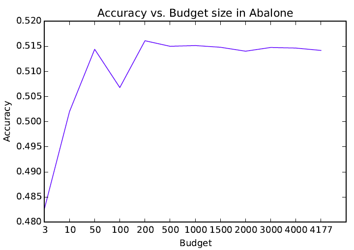 - Finally, the budget selection schemes tested were equivalent, so isn't necessary the extra computation of k-means cluster centers.