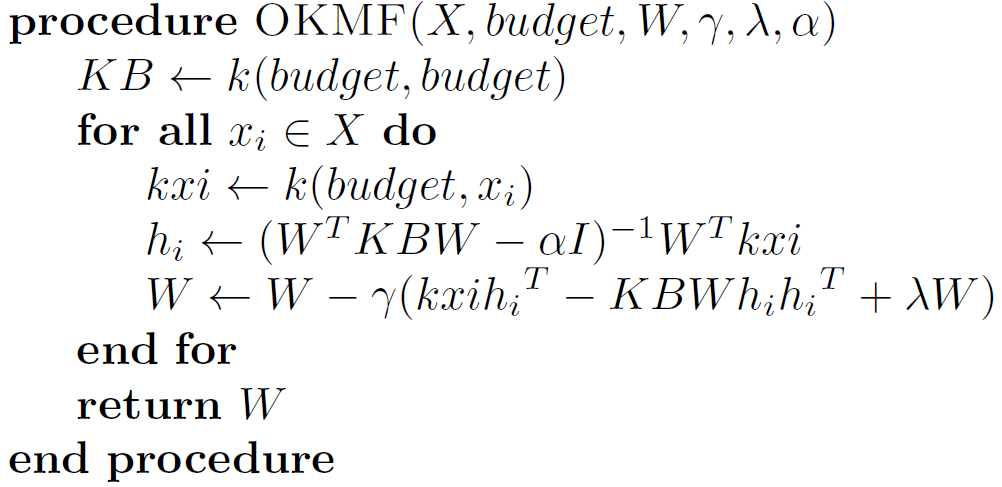 - Design of a new KMF algorithm, called online kernel matrix factorization (OKMF).