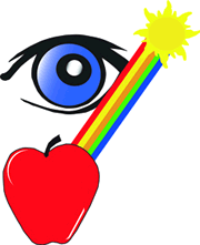 The human eye and brain together translate light into color. Light receptors within the eye transmit messages to the brain, which produces the familiar sensations of color.
