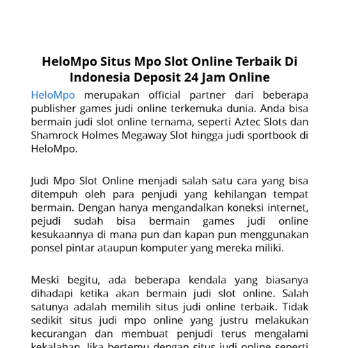 HeloMPO merupakan salah satu situs judi MPO yang di kategorikan dengan agen judi game slot Online terbaik dan ternyaman.