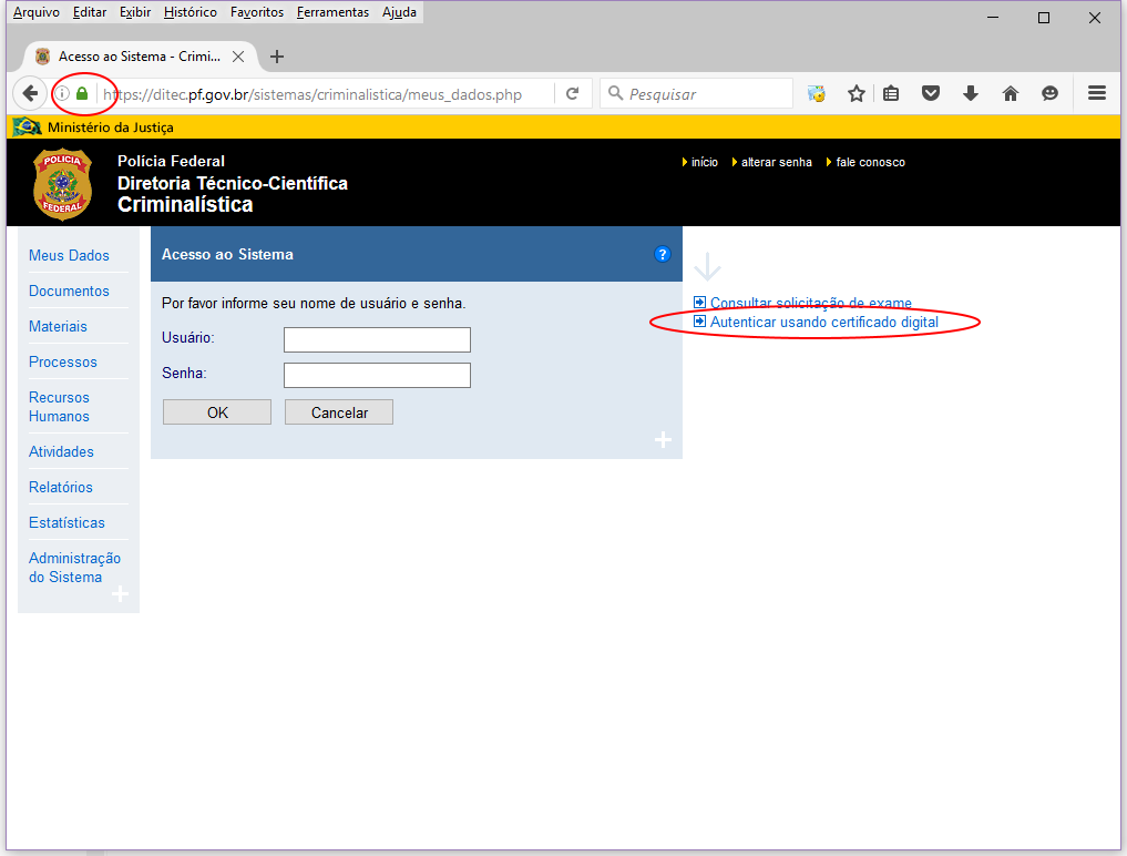 Como fazer o login seguro no Criminalística