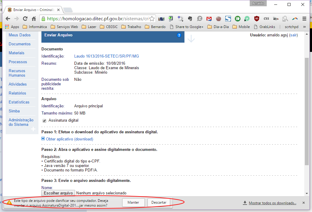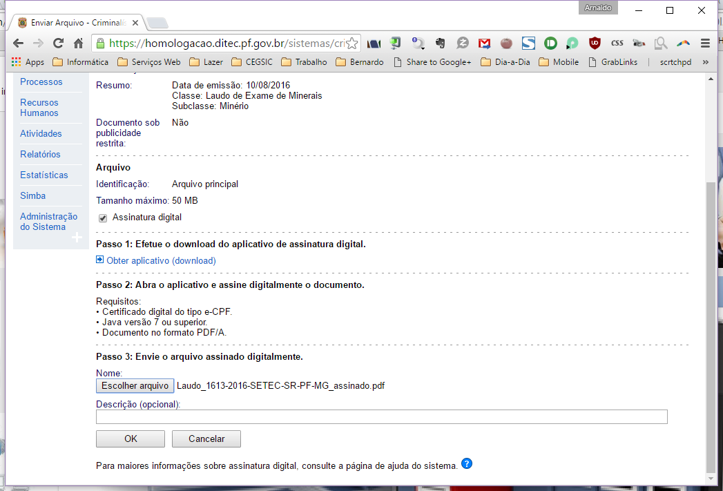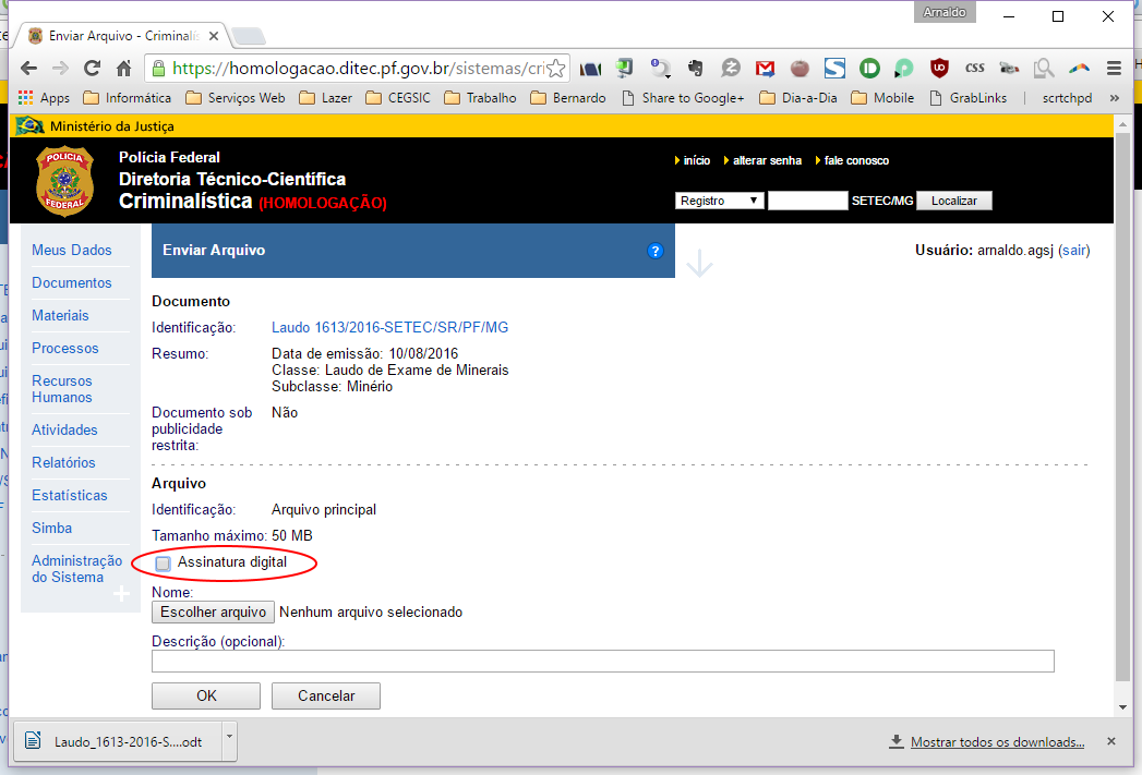 10 - enviar arquivo assinado para o criminalística