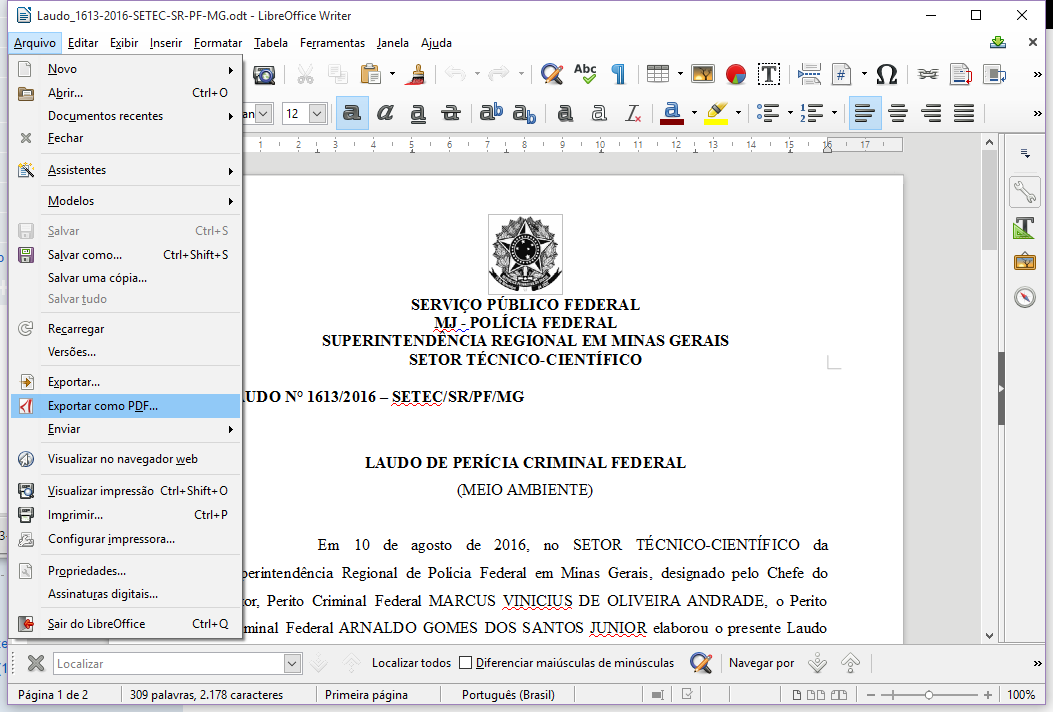 - Incluir anexos no arquivo do laudo pois Criminalística só aceita assinatura em documento principal
