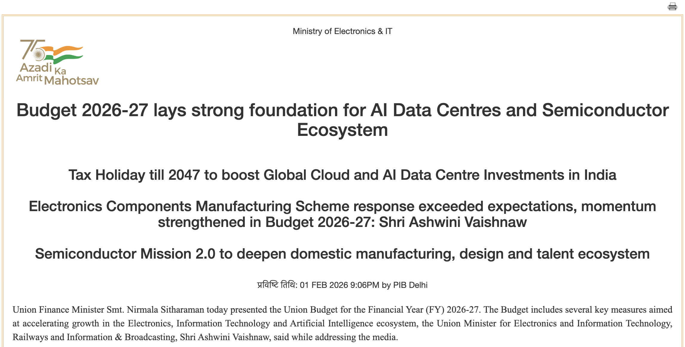 India's new FY 2026-27 announcements