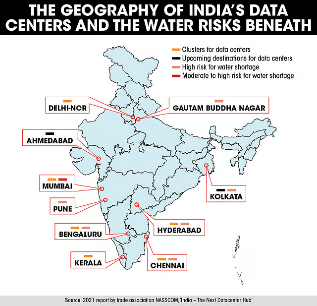 - 60–80% of Indian data centres projected to face high water stress this decade
