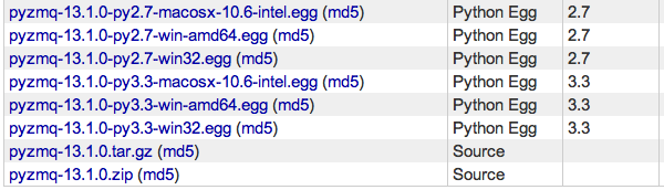 $ pip install -U pip ... $ pip install --use-wheel pyzmq