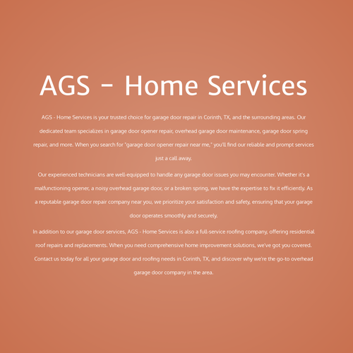 AGS - Home Services offers comprehensive solutions for both garage doors and roofing. Our services cover the repair, replacement, and installation of residential garage doors.