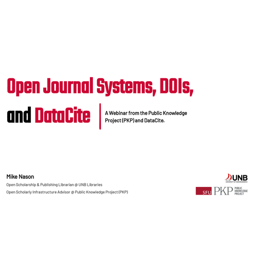 Persistent Identifiers, commonly referred to as PIDs, play a pivotal role in fostering trust within scholarly publications while concurrently enhancing publication discoverability and accessibility. Join this session to learn about the multifaceted value of PIDs at different levels, including authors, articles, and journals. The second part of this webinar will explore practical skills around PIDs, plugins, integrations, and interoperability for Open Journal Systems (OJS) users. Join this webinar and learn to think more maximally about metadata in your OJS publications!