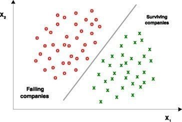 - Divides n-dimensional feature space into classifications on either side of an n-1 dimensional hyperplane