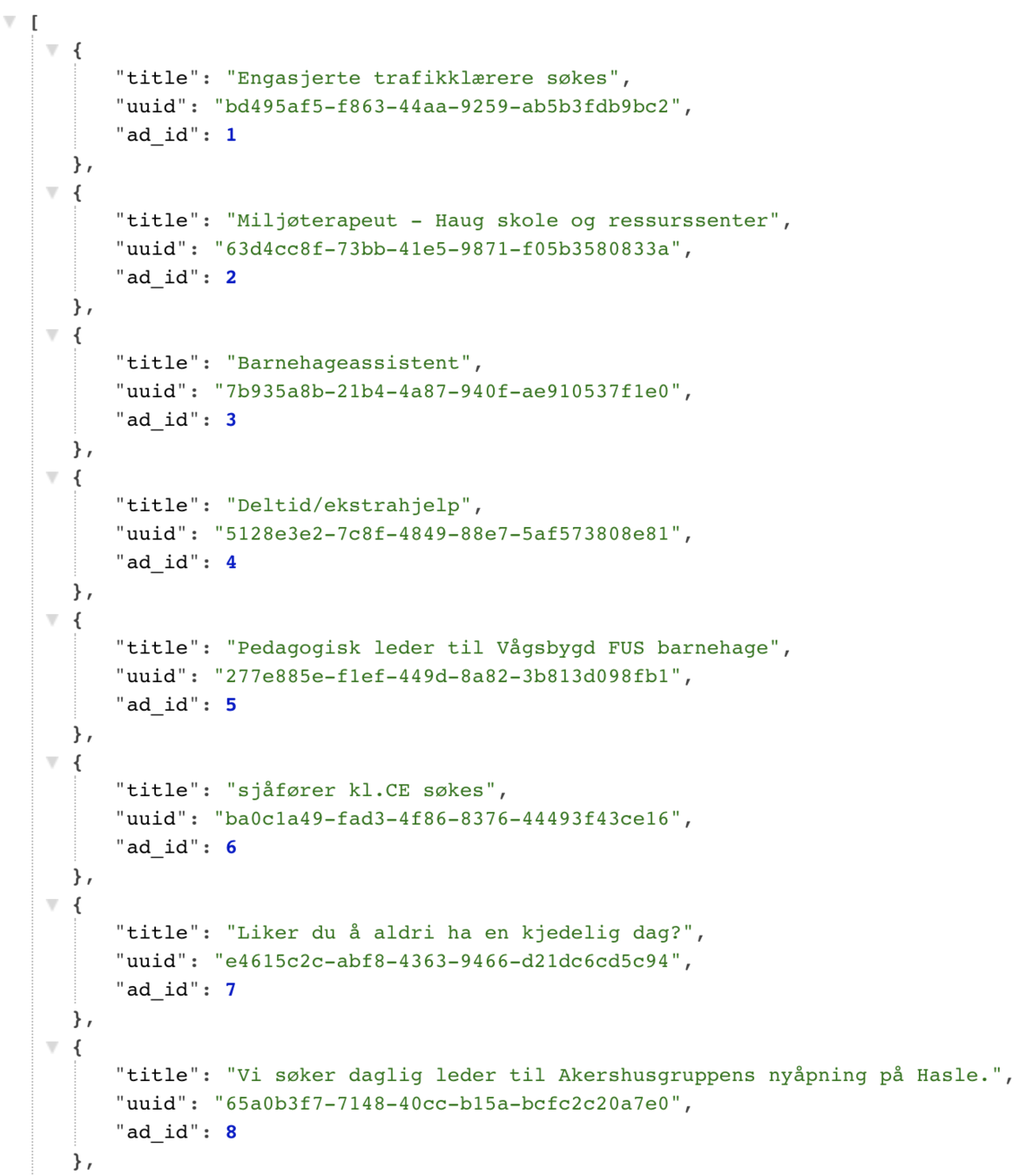 Working example of /api/ad/titles