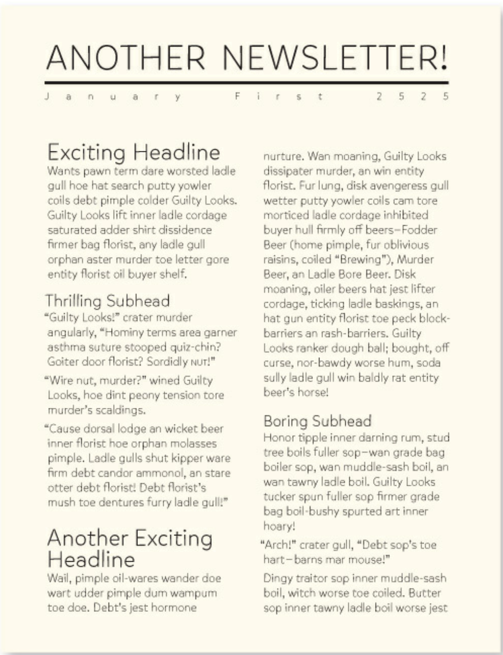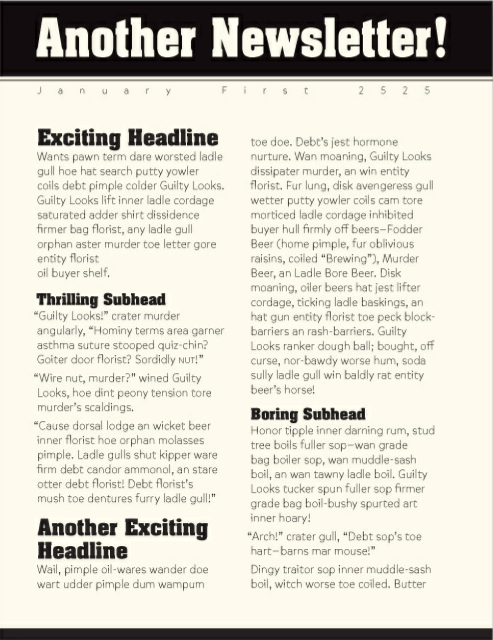 Contrast various elements of the piece to draw a reader’s eye into the page. If two items are not exactly the same, then make them different. Really different.
