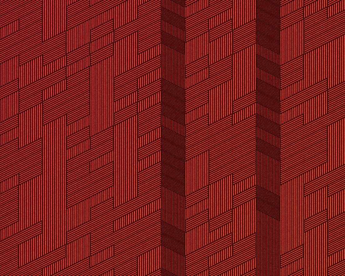 First, the number of concentric squares in each set is randomly altered, disrupting the optical vibration of the grid. Then, the concentric squares snap back to the grid, but their central square is randomly displaced, like a fish hanging on to a sea anemone. Link.