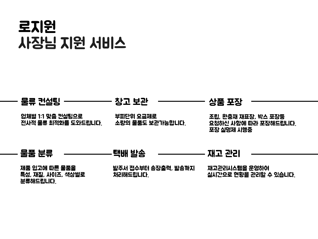 보관, 포장, 발송. 원스톱 종합 물류 서비스.