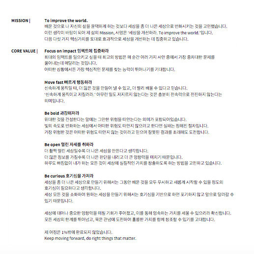 저만의 Life Core Value가 오롯이 담겼습니다.
