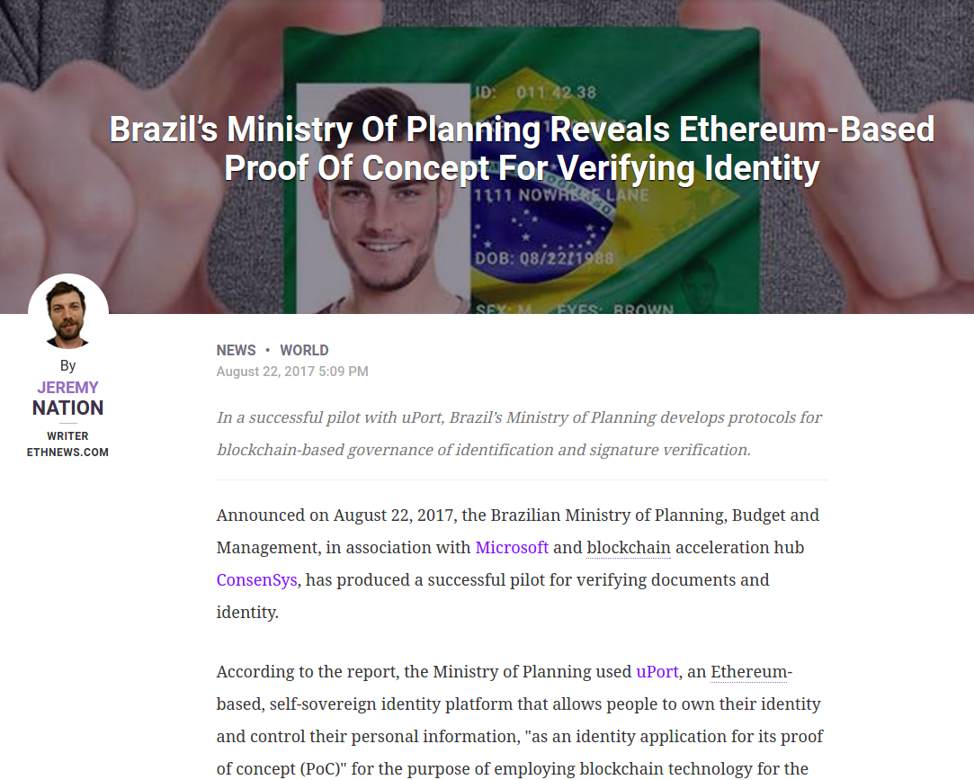 - Prueba de concepto desarrollada por MSFT / ConsenSys - uPort