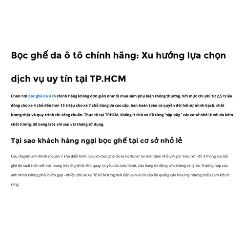 Boc ghe da o to chinh hang: Xu huong lua chon dich vu uy tin tai TP.HCM