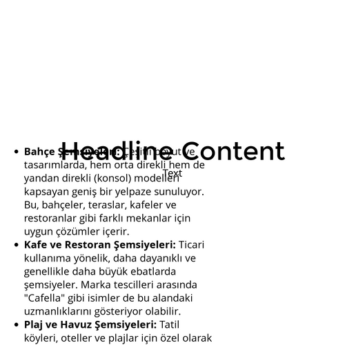 Akbrella, dış mekan gölgelendirme sistemleri konusunda geniş bir ürün gamına sahiptir. Ana odak noktaları genellikle şemsiyeler olsa da, web sitelerindeki bilgilere göre (Akbrella'nın geniş patent ve tescilli markaları var. ve adreslerinde