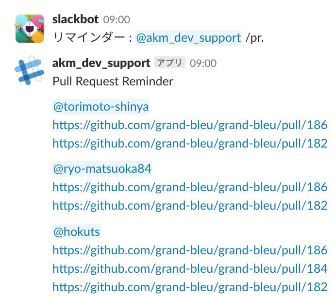 Slackdriver Loggingをちらっと見た感じではPRリマインダが