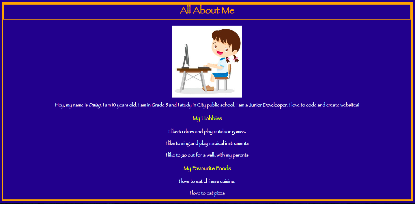 | Student Activity 2 | All About Me(using External CSS) | https://replit.com/@AkshitSharma8/G5C3TAExternalSolution#index.html |