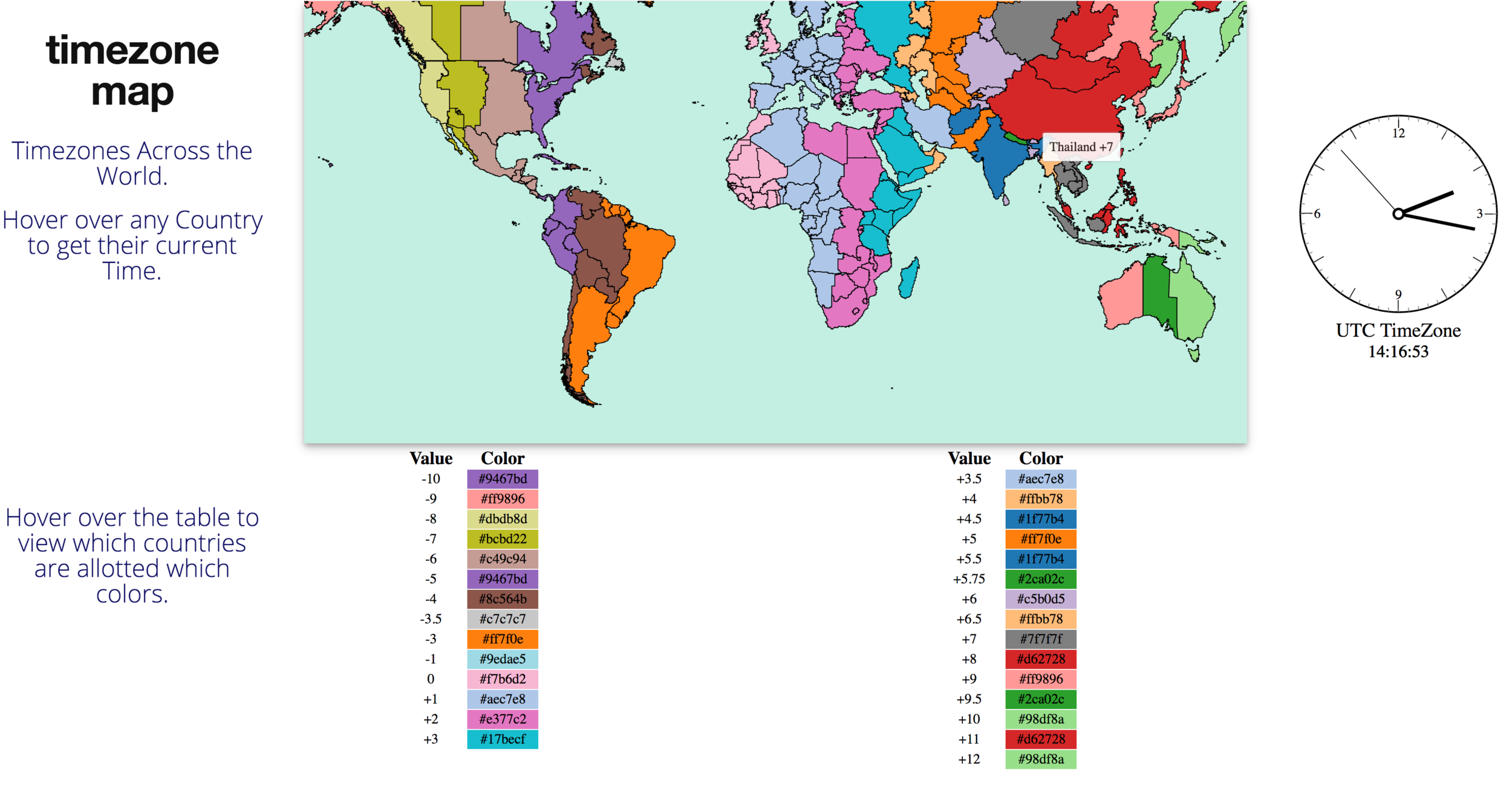 Visualisation of timezones across the world: http://akul.me/timezones/