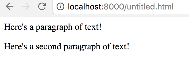 <html> <head> </head> <body> <p> Here's a paragraph of text! </p> <p> Here's a second paragraph of text! </p> </body> </html>