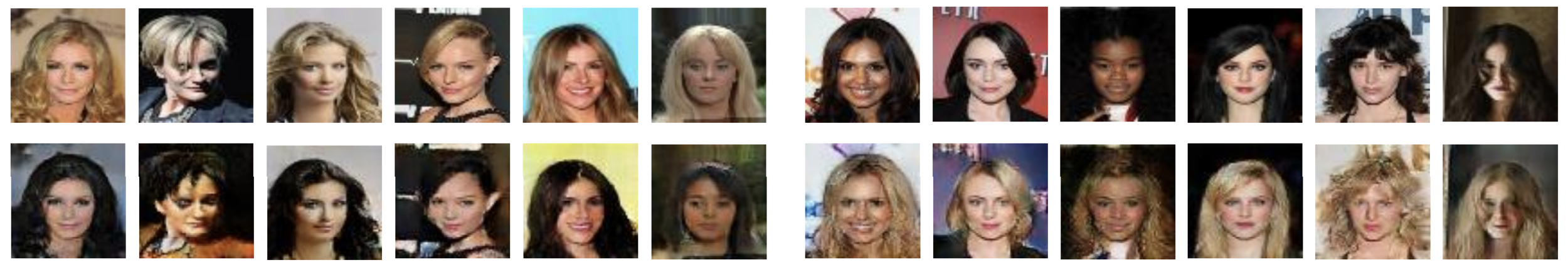 (b) Blond to black and black to blond hair color conversion in CelebA dataset.