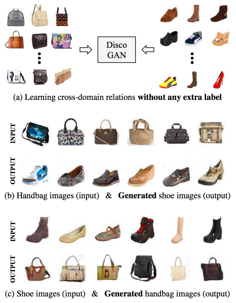 Learning to Discover Cross-Domain Relations with Generative Adversarial Networks (Link)