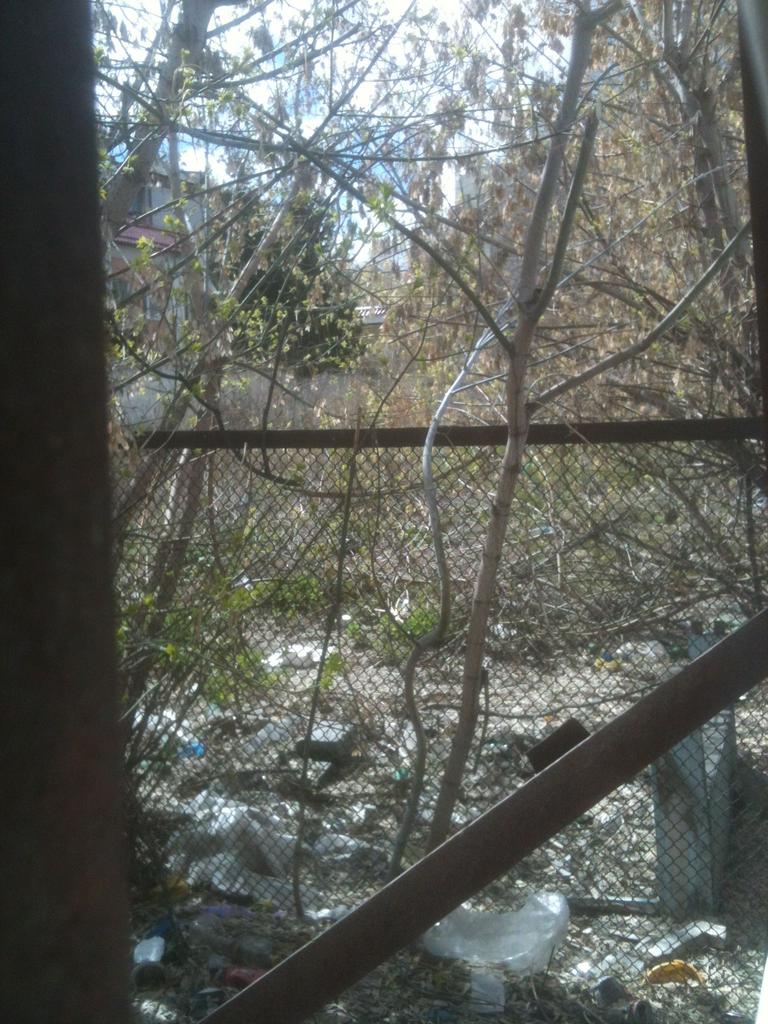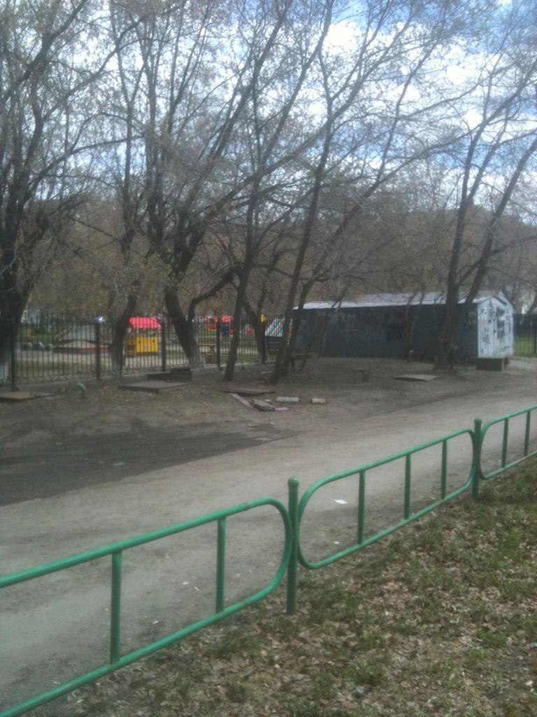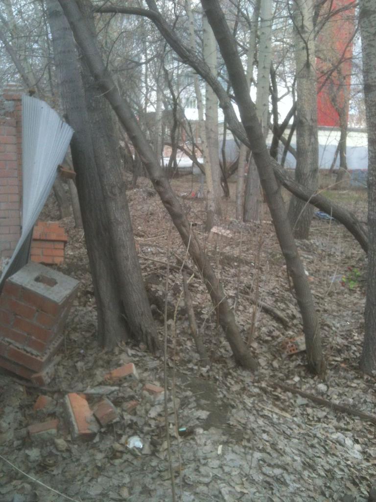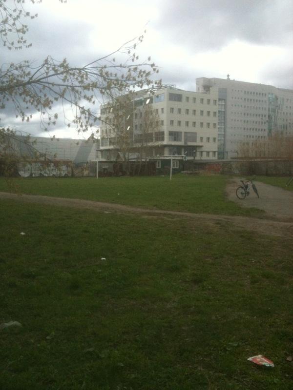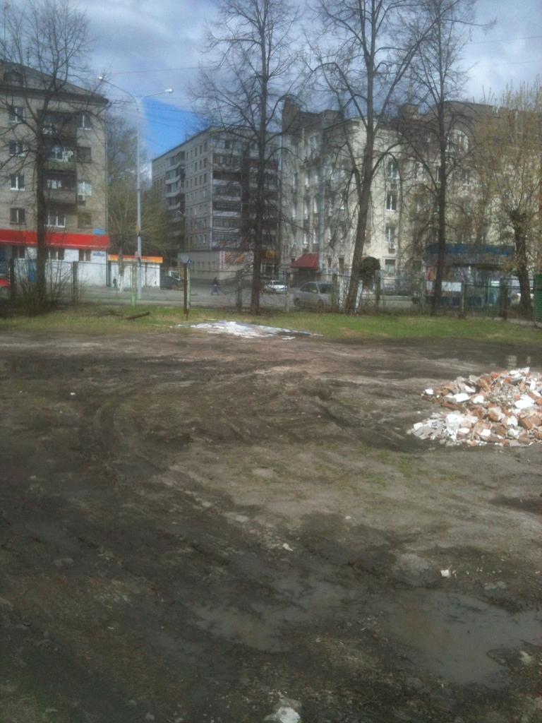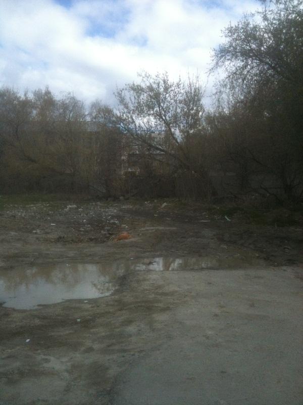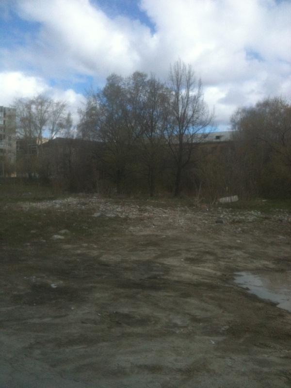Неиспользующийся участок, часть территории бывшей станции юннатов. Несостоявшаяся вторая очередь офисного центра. В данный момент на него свален строительный мусор от стоящего рядом офисного центра.