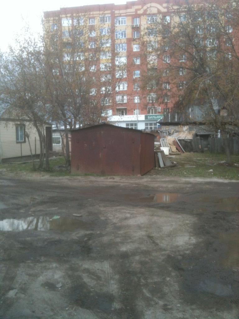 Неблагоустроенная незаасфальтированная зона, занятая в т.ч. металлическими гаражами, разросшимися деревьями