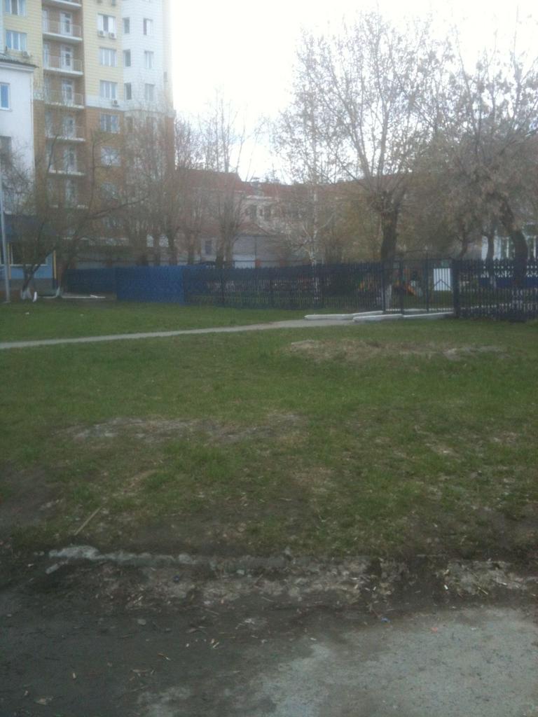 Неиспользуемый участок земли, огороженный бордюром, примыкающий вплотную к забору ДС №2.