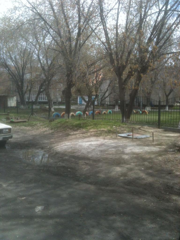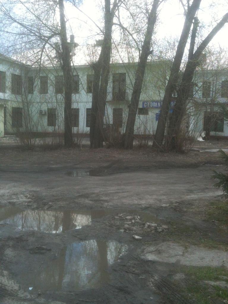Неблагоустроенная территория бывшего садика, который сейчас является офисным центром. Владельцы не вкладывают ни в благоустройство территории, ни в ремонт самого здания. Незаасфальтированная территория “садика” и тротуары вдоль Холодильной всегда заставлены автомобилями